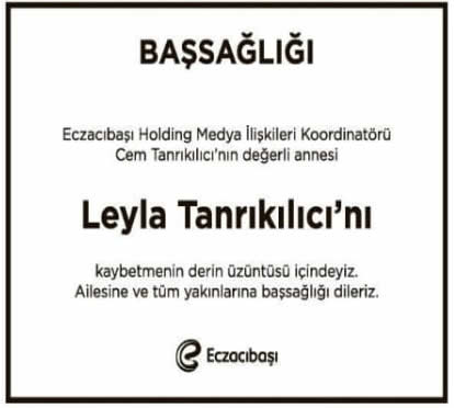 Eczacıbaşı Holding Medya İlişkileri Koordinatörü Cem Tanrıkılıcı’nın değerli annesi