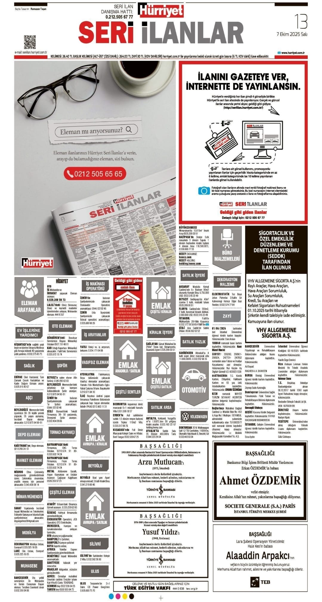 Hürriyet Başsağlığı İlanı | Alaaddin Arpakçı – 7 Ekim 2025