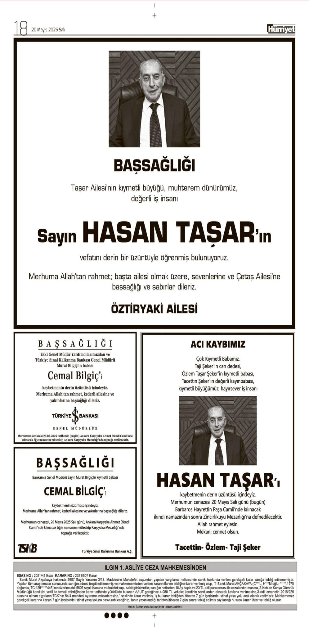 20 Mayıs 2025 Hürriyet Gazetesi Vefat İlanları