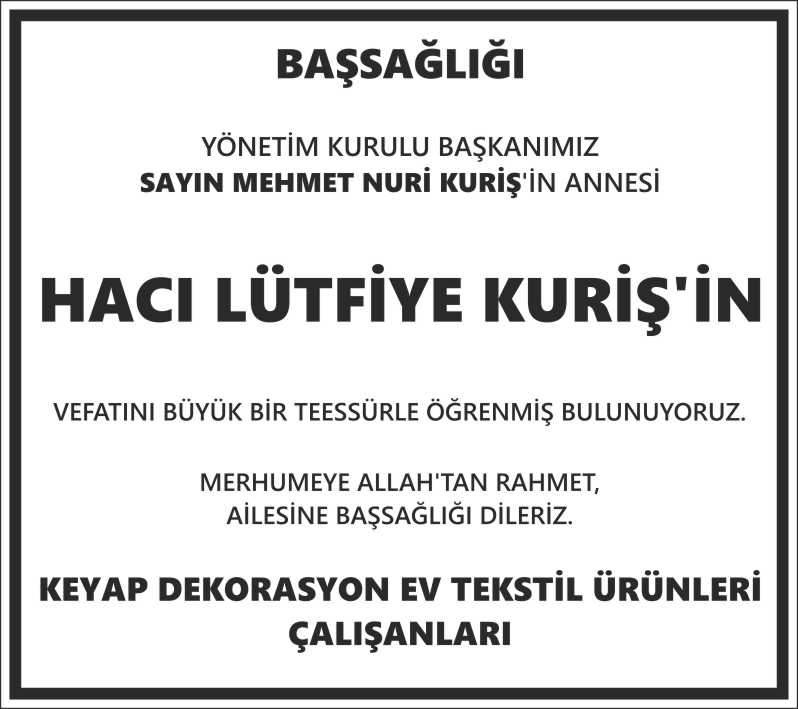 ☎️Hürriyet Gazetesine Başsağlığı İlanı Vermek İçin 444 45 26 üzerinden ilan servisimizi 7/24 Arayabilirsiniz.